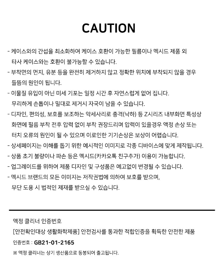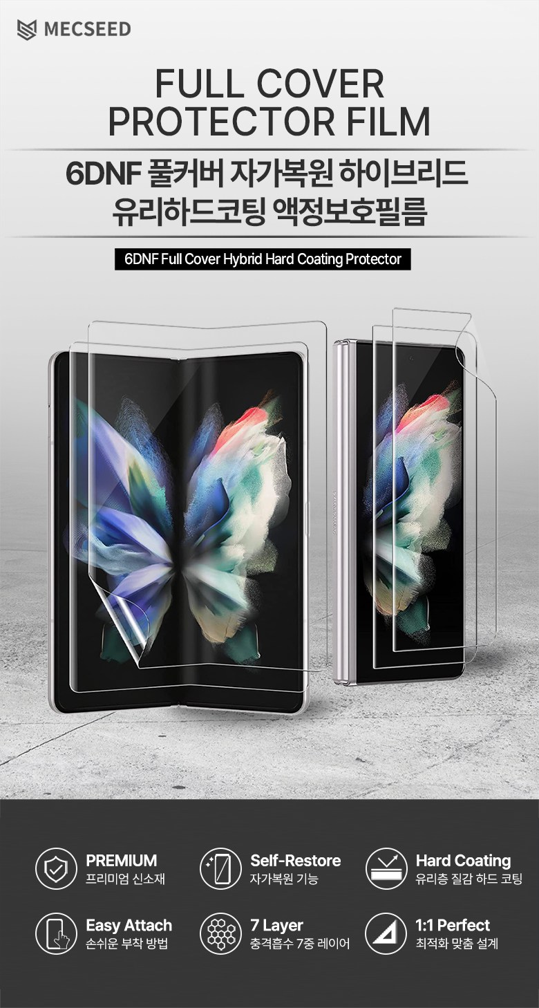 | 품명 및 모델명 | 멕시드 6DNF 풀커버 자가복원 하이브리드 유리하드코팅 강화 휴대폰 액정보호필름, 갤럭시 Z 폴드6, 내부 2p + 외부 2p | 인증/허가 사항 | 본품: 해당없음 / 알콜솜: GB21-01-2165 |