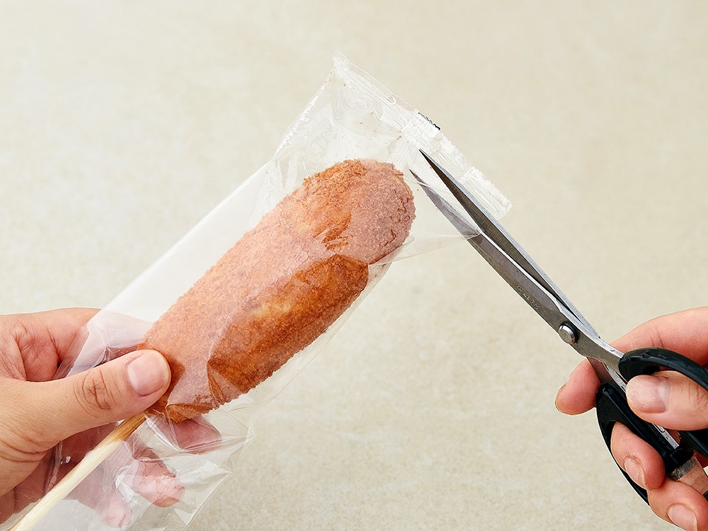 배가 고픈데 본격적으로 식사를 차려먹기는 싫을 때, 핫도그만큼 좋은 간식이 또 없죠. 부드러운 반죽으로 도톰한 소시지를 감싼 뒤, 빵가루를 입혀 바삭하게 튀겨냈어요. 한입 베어 물면 고소한 풍미와 함께 소시지의 짭조름한 감칠맛이 전해진답니다.