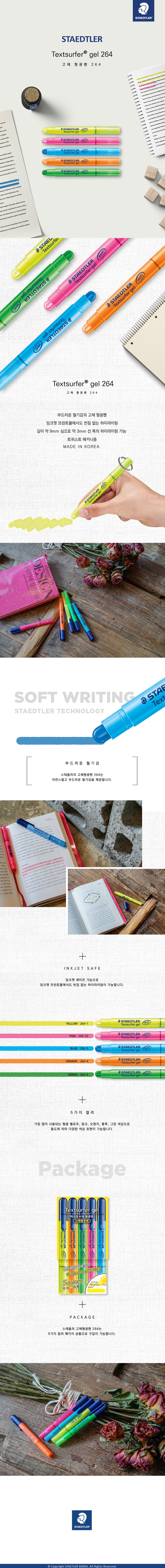 | 품명 및 모델명 | 스테들러 텍스트서퍼 겔 고체 형광펜 264 5색 세트 혼합색상 1세트 | KC 인증정보 | CB115F0001-4001 |
