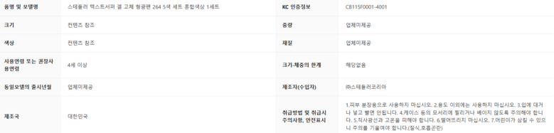| 품명 및 모델명 | 상품 상세페이지 참조 | 인증/허가 사항 | 상품 상세페이지 참조 |