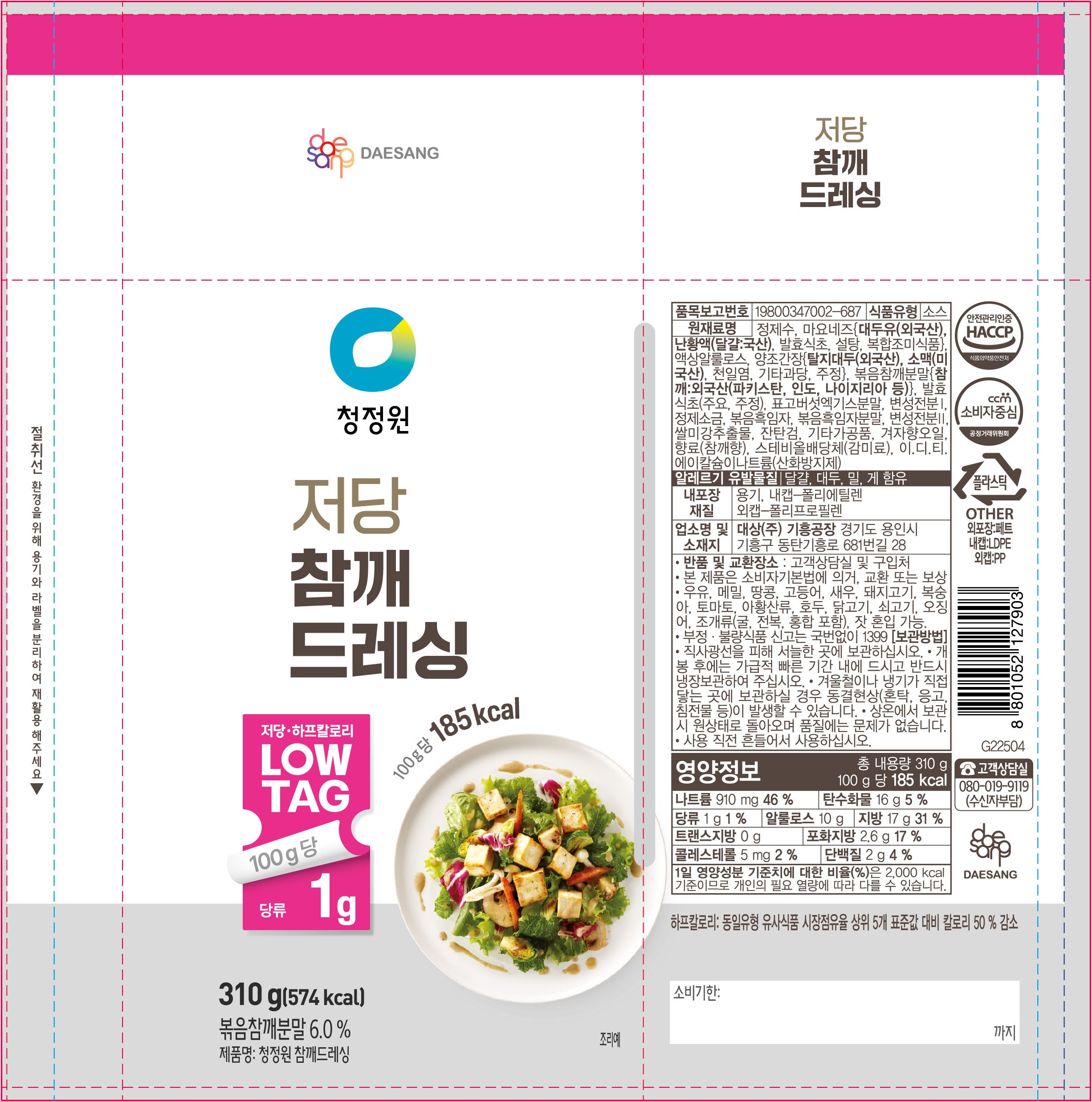 | 제품명 | 청정원 참깨드레싱 | 식품의 유형 | 컨텐츠 참조 |