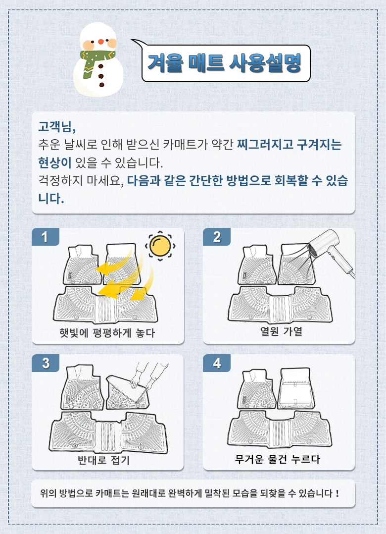 - ㆍ교환/반품에 관한 일반적인 사항은 판매자가 제시사항보다 관계법령이 우선합니다.