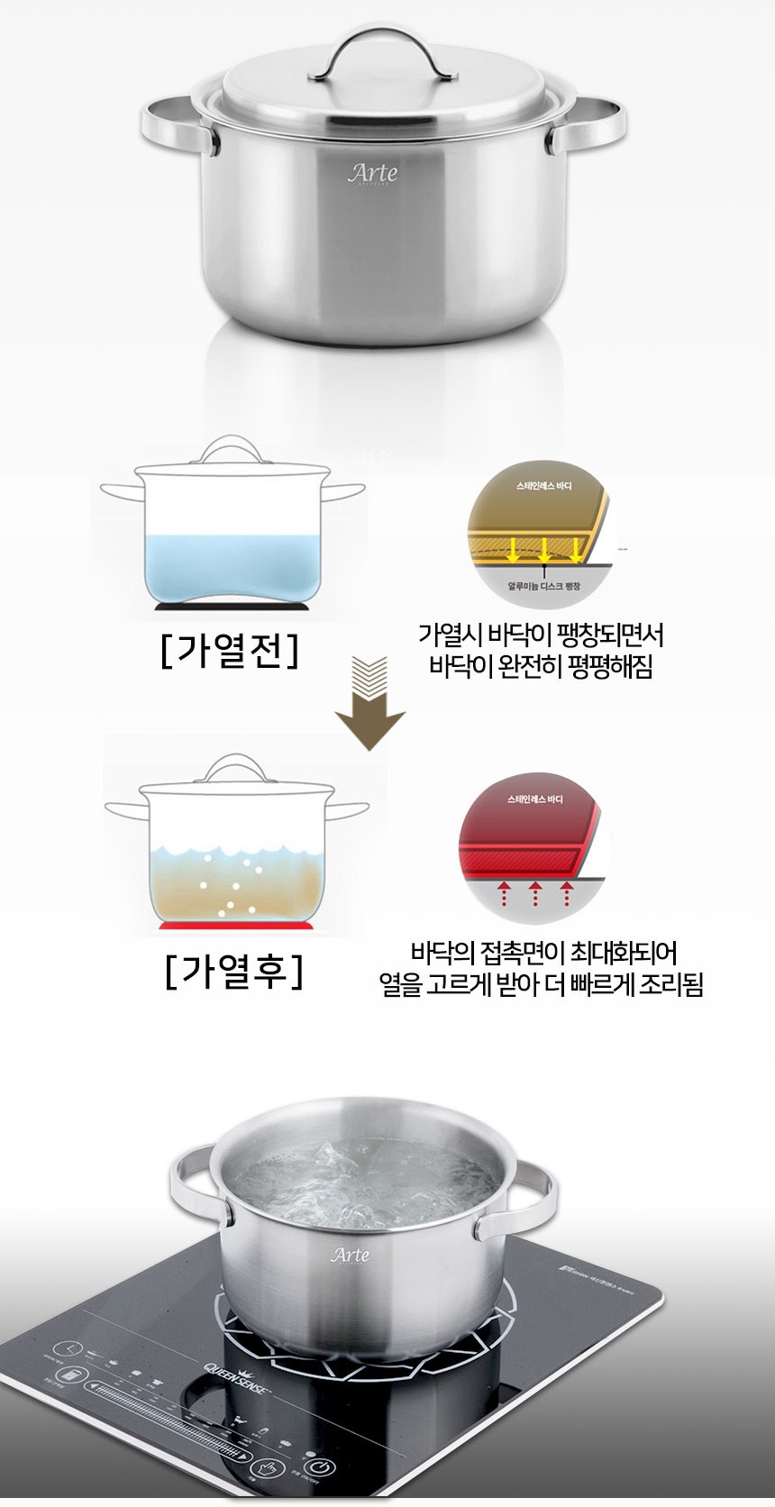 | 품명 및 모델명 | 퀸센스 아르떼 통5중 스텐 냄비 편수18cm | 재질 | 컨텐츠참조 |