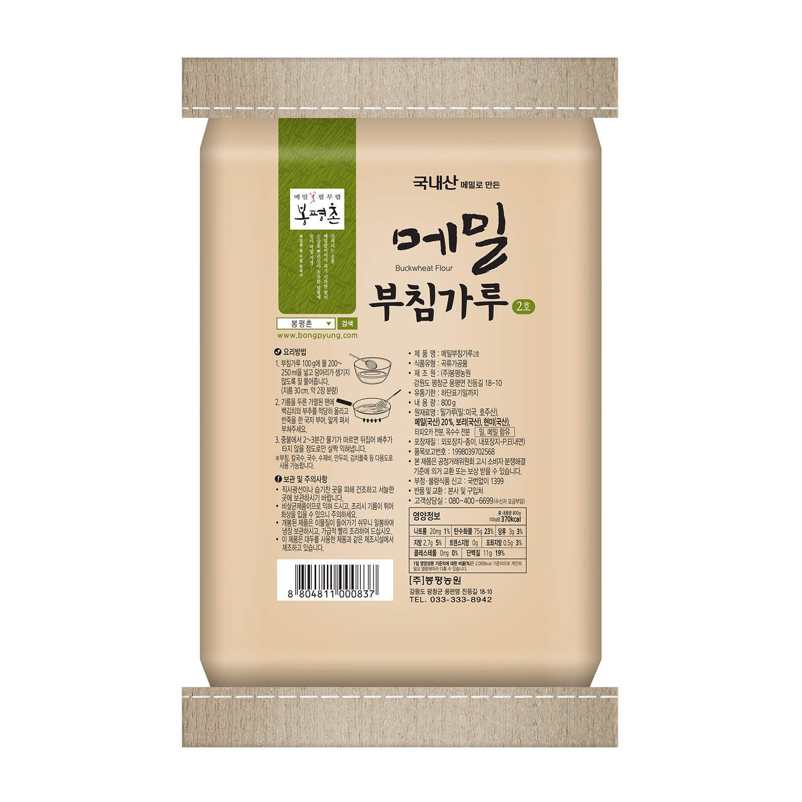 | 제품명 | 봉평촌 메밀부침가루 2호 | 식품의 유형 | 컨텐츠 참조 |