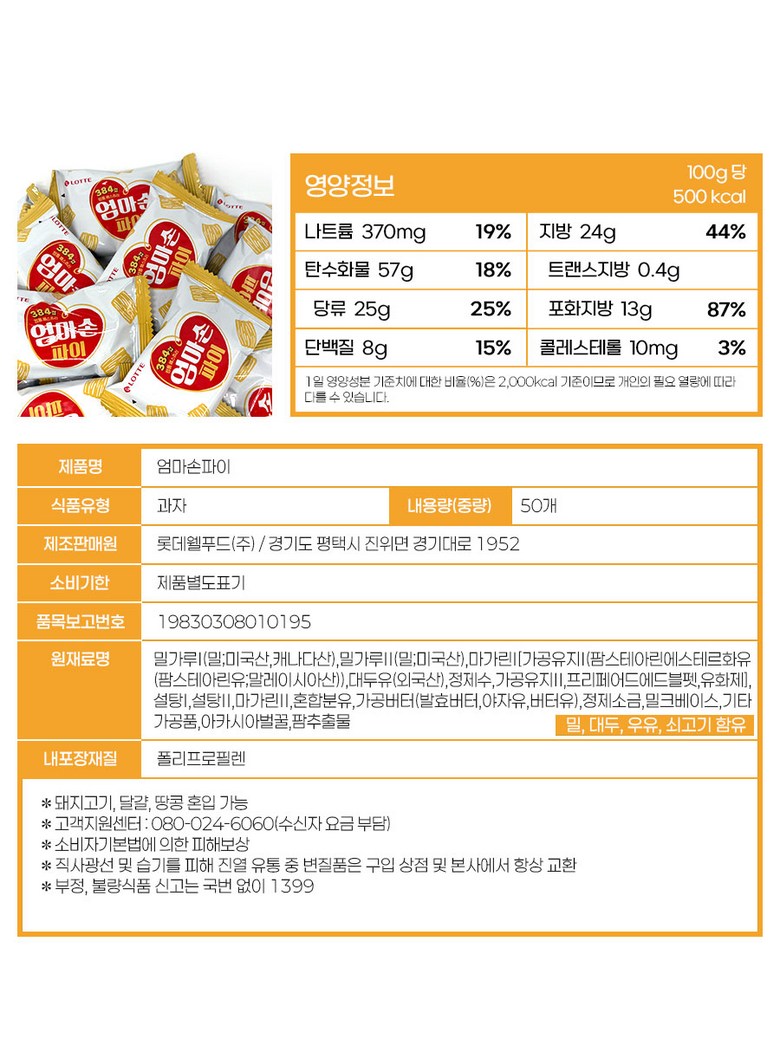 | 생산자 및 소재지 | 상품 상세페이지 참조 | 제조연월일, 소비기한 또는 품질유지기한 | 상품 상세페이지 참조 |