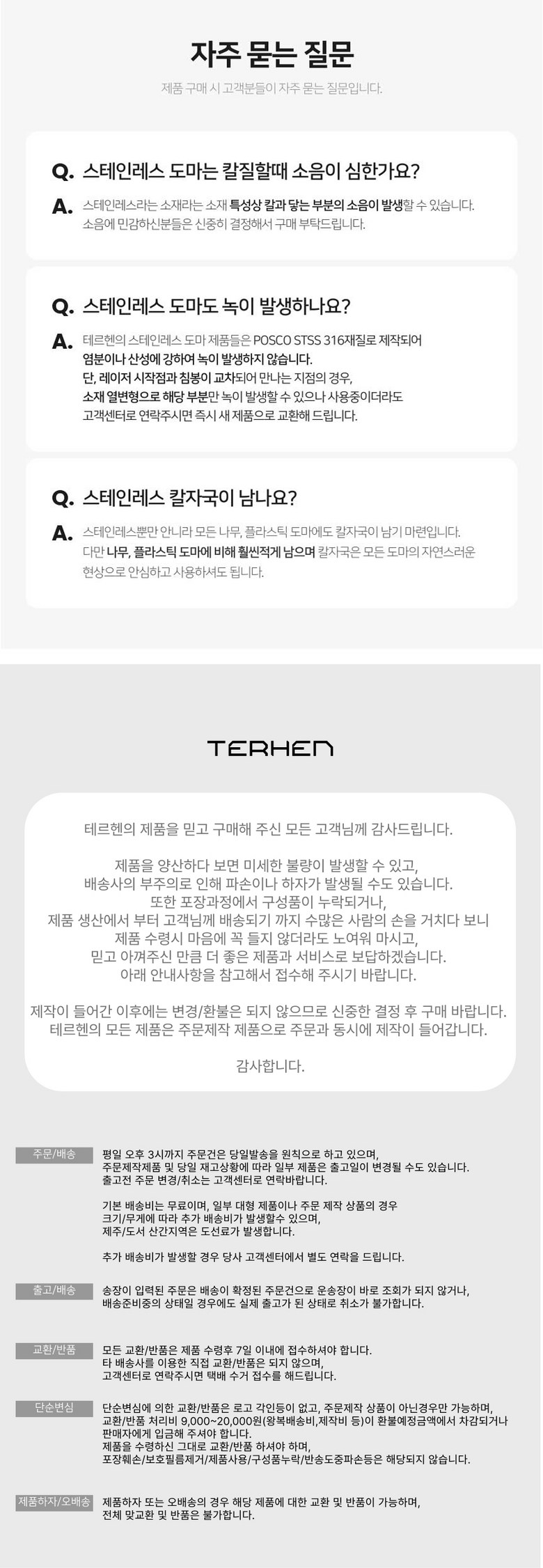 - 상품문의 및 후기게시판을 통해 취소나 환불, 반품 등은 처리되지 않습니다.