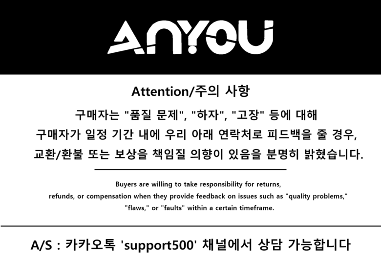 - ㆍ교환/반품에 관한 일반적인 사항은 판매자가 제시사항보다 관계법령이 우선합니다.