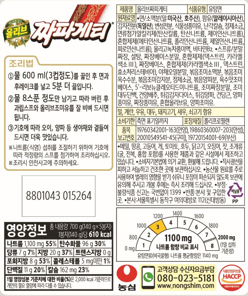| 포장단위별 내용물의 용량(중량), 수량 | 140g x 5개 | 원재료명 및 함량 | 컨텐츠 참조 |