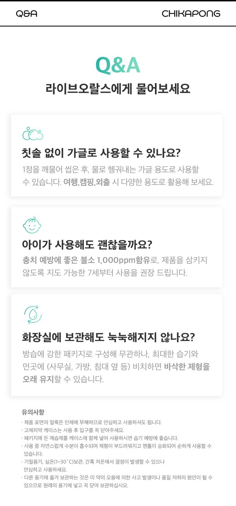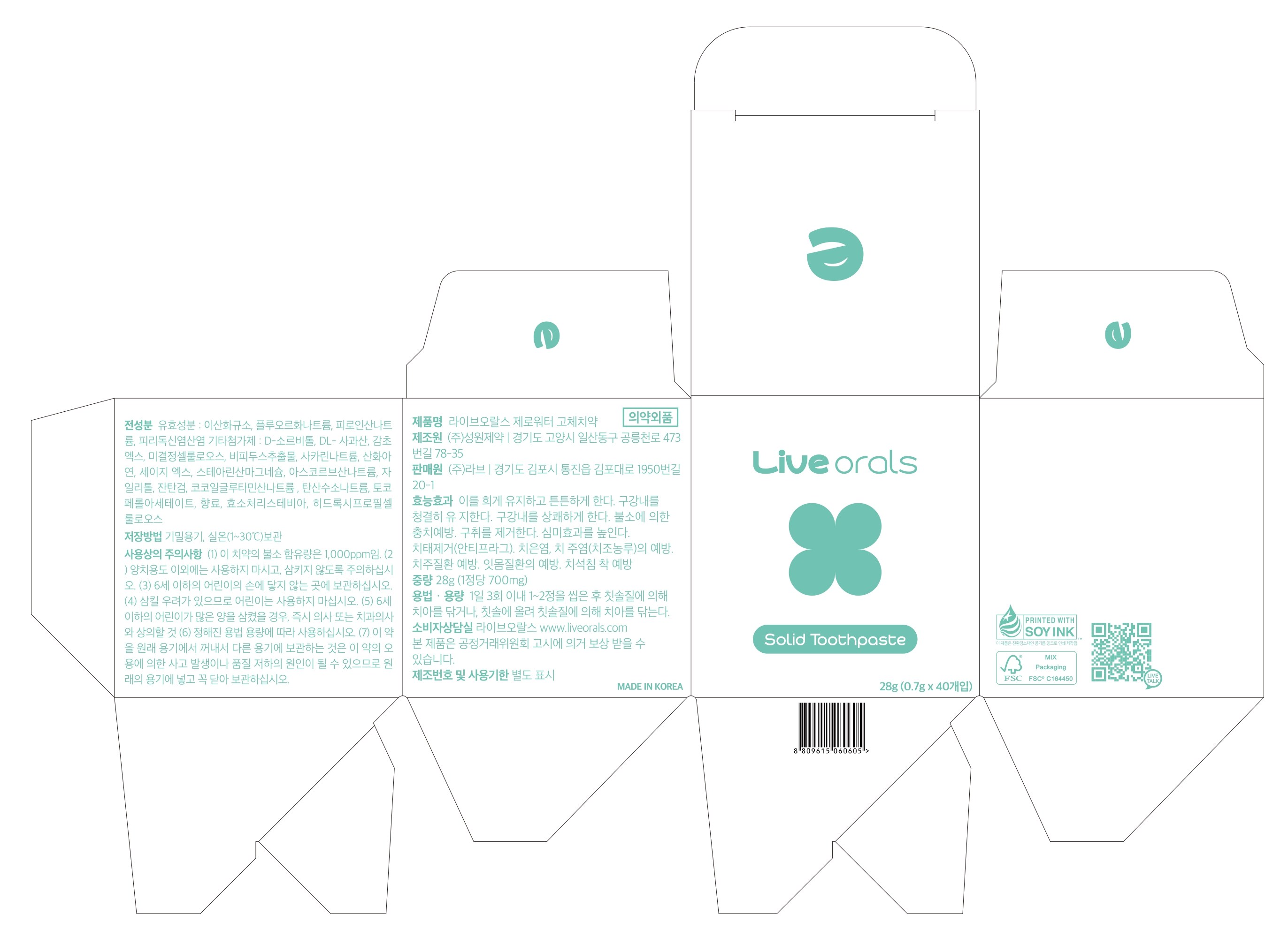 | 품명 및 모델명 | 라이브오랄스제로워터고체치약 | 인증/허가 사항 | 의약외품 |