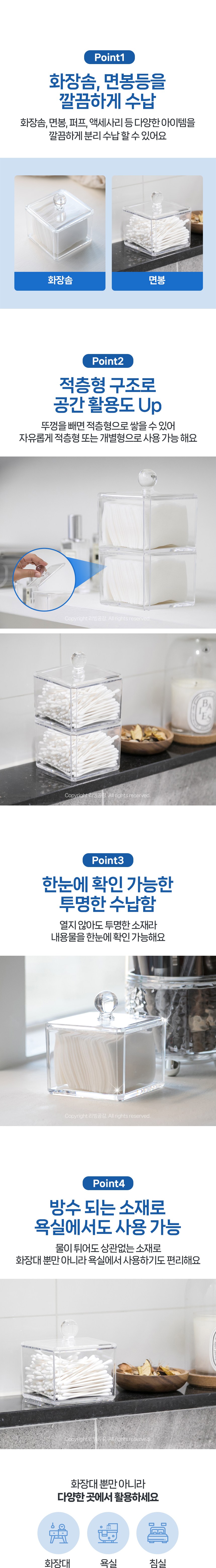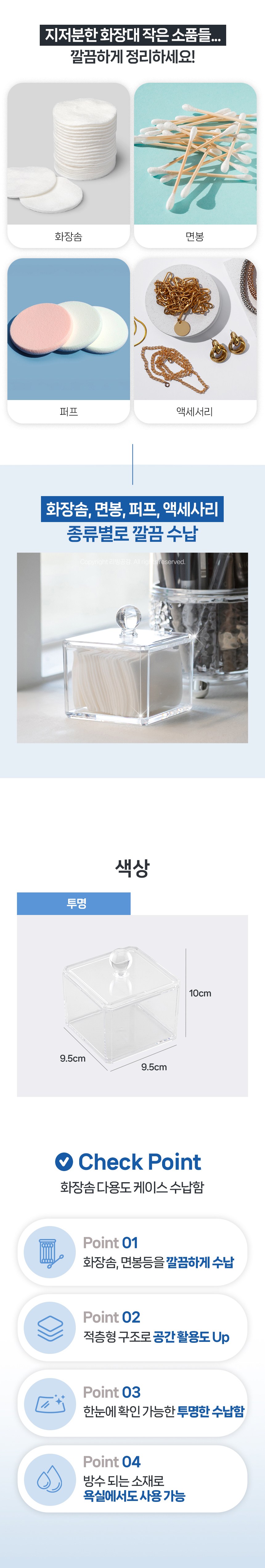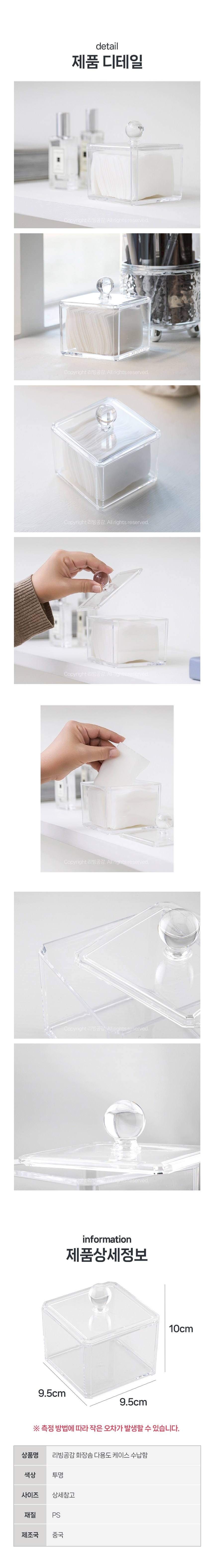 | 품명 및 모델명 | 리빙공감 화장솜 다용도 케이스 수납함 투명 | 인증/허가 사항 | 해당없음 |