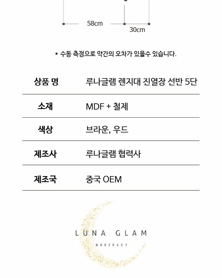 | 품명 및 모델명 | 루나글램 5단 렌지대 진열장 선반 | 인증/허가 사항 | 해당사항없음 |