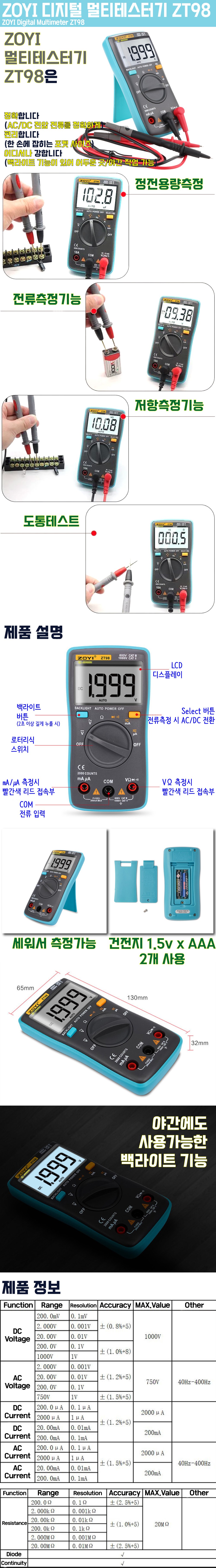 | 품명 및 모델명 | 멀티테스터기ZT98 | 인증/허가 사항 | 해당없음 |