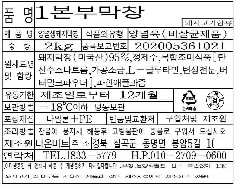 *** 막창소스 구매시 판매자 상품보기에 다온미트 클릭하시면 개당