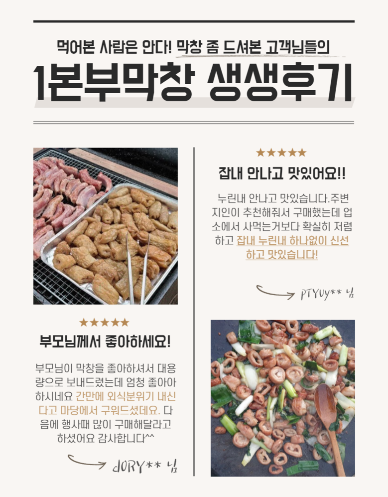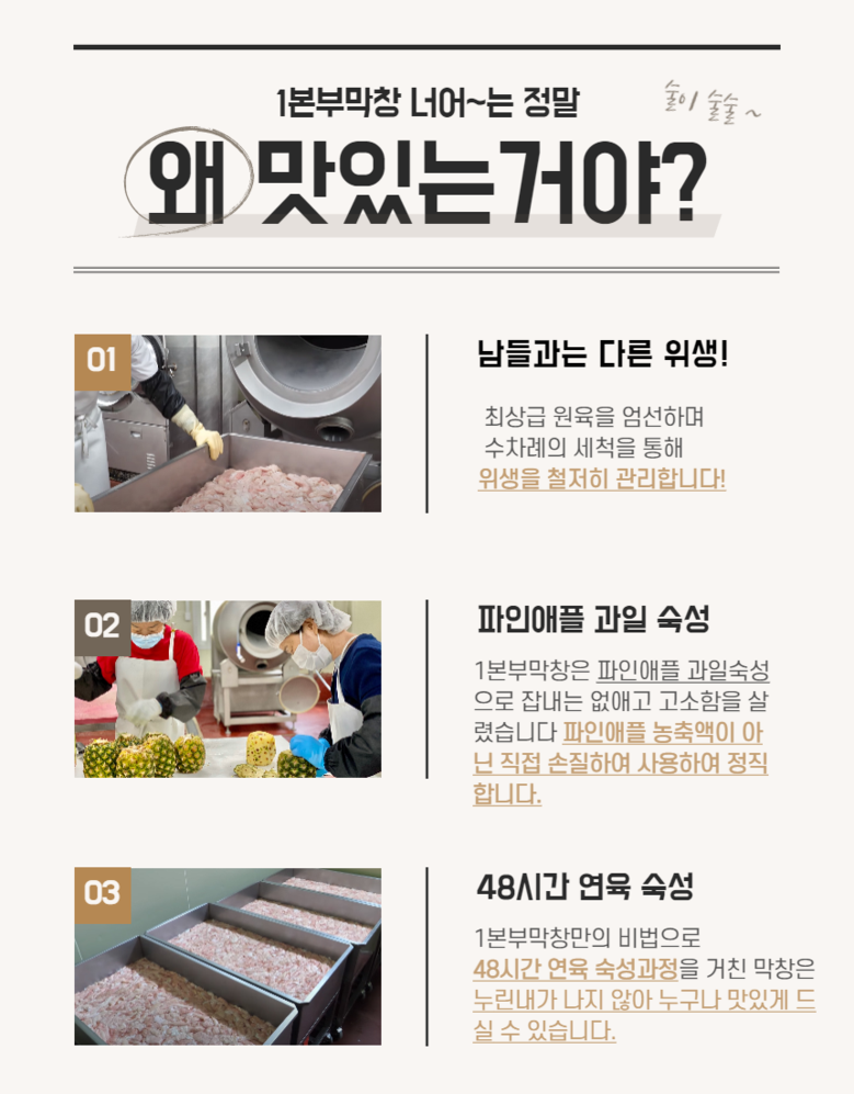 저희는 온라인전용이 아닌 오랫동안 막창 맛집 체인에 납품하는 그제품 그대로 좋은 원육으로 만든 제품을