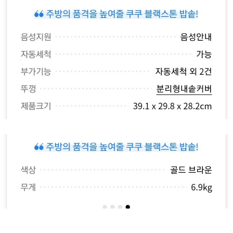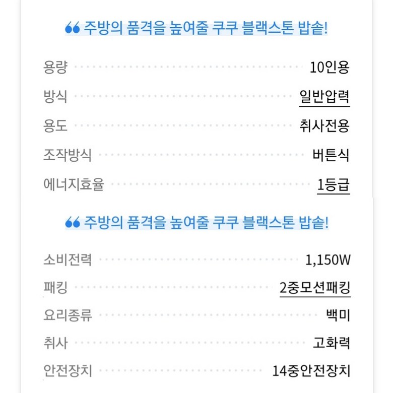 | 정격전압, 소비전력 | 상품 상세페이지 참조 | 에너지소비효율등급 | 상품 상세페이지 참조 |