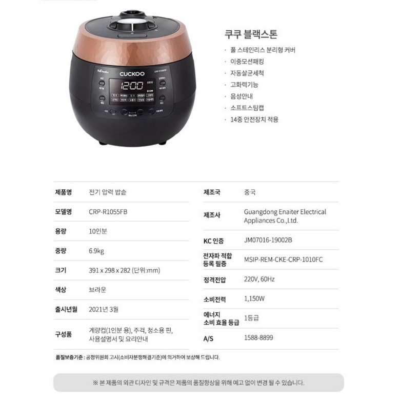 쿠쿠압력밥솥 10인용 블랙스톤 CRP-BR1055FB