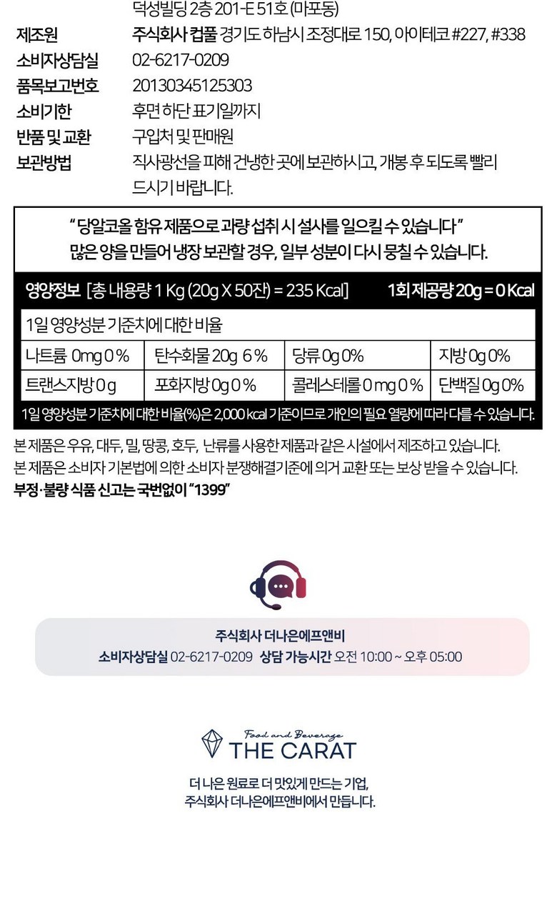 | 제품명 | 상품 상세페이지 참조 | 식품의 유형 | 상품 상세페이지 참조 |