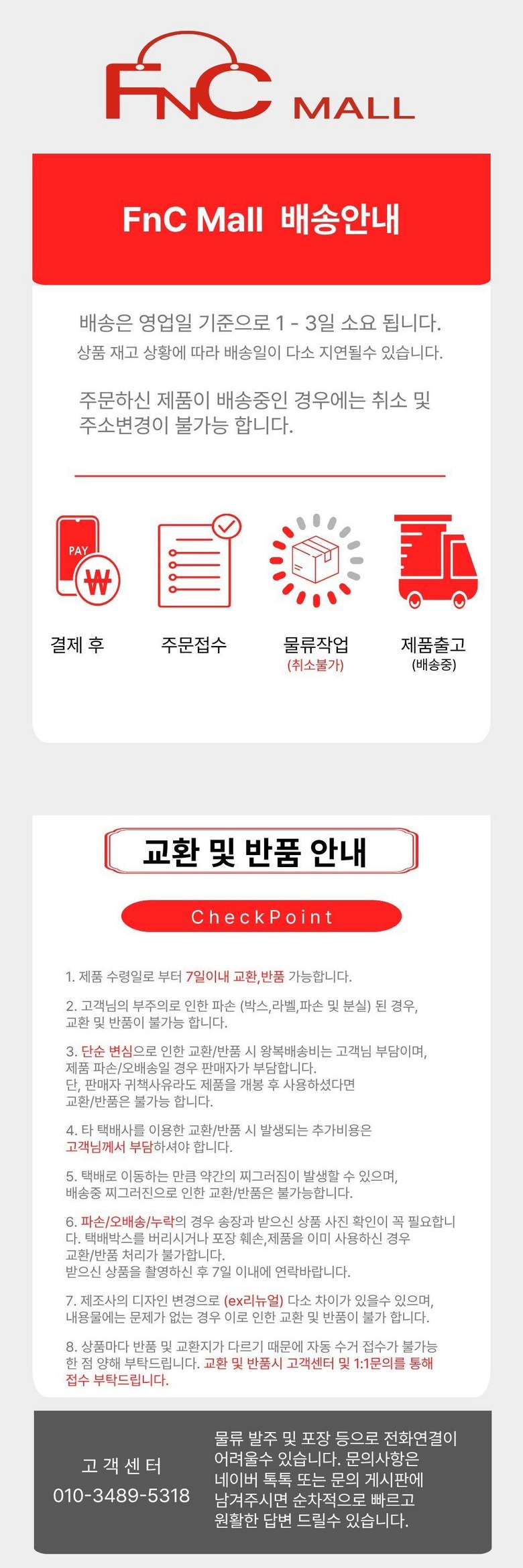 - ㆍ모니터 해상도의 차이로 인해 색상이나 이미지가 실제와 달라, 고객이 단순 변심으로 교환/반품을 무료로 요청하는 경우