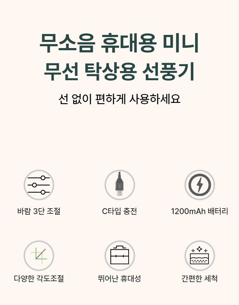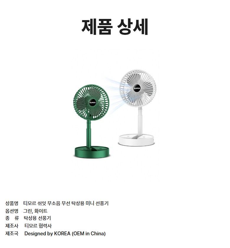티모르 쉬잇 무소음 무선 탁상용 미니 선풍기