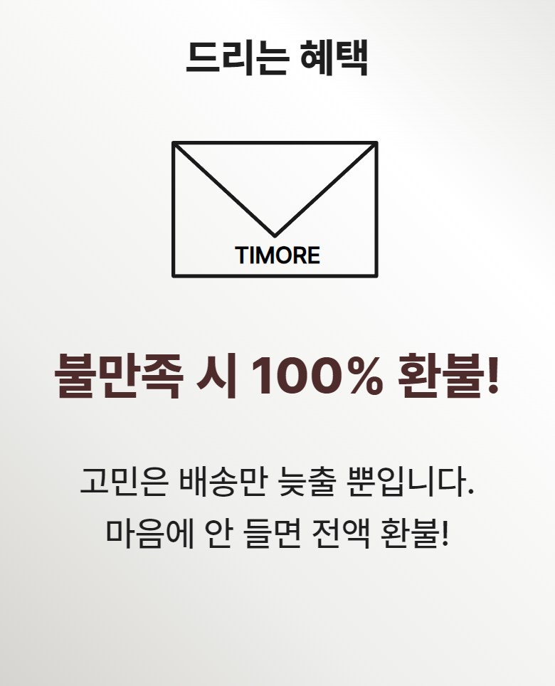- ㆍ모니터 해상도의 차이로 인해 색상이나 이미지가 실제와 달라, 고객이 단순 변심으로 교환/반품을 무료로 요청하는 경우