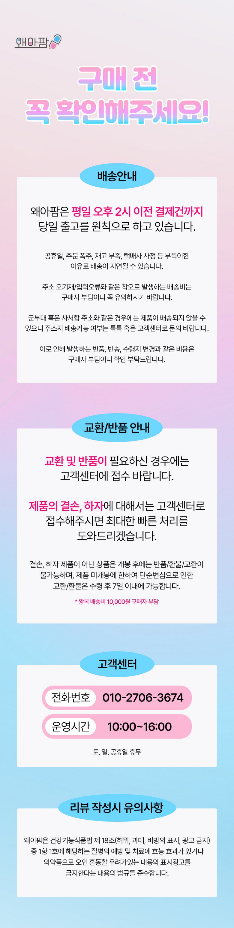 | 교환/반품 비용 (왕복비용) | 6,000원 - 단, 고객 변심의 경우에만 발생 - 도서산간 및 일부 지역 추가비용 발생 |