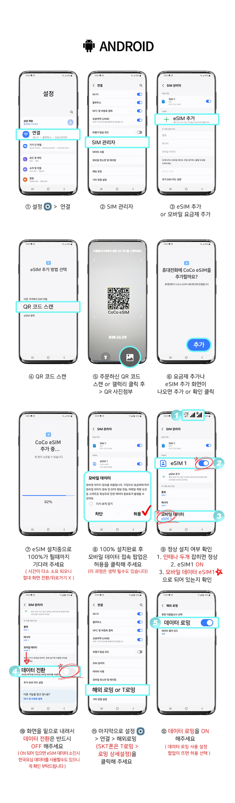 ⑥ QR코드 스캔 유효기간은 30일입니다. QR코드 받으신후 30일이 넘어서 스캔시 eSIM 등록이 불가하며 교환,반품도 불가하오니 꼭 30일 이내 출국 일정이 있으신 경우에만 구매 부탁드립니다.