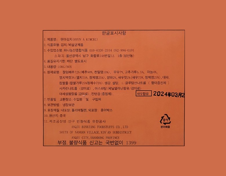 상호/대표자 | 하나농산종합식품 / 손용현 | 사업장 소재지 | 울산광역시 북구 진장유통로 18-15 1층 |