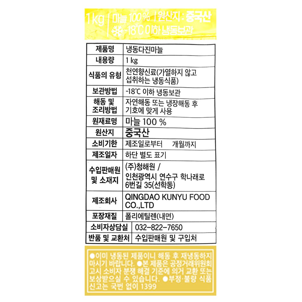요리에 깊은 맛을 더하려면 필수적으로 필요한 다진 마늘. 일일이 껍질을 까고, 잘게 다지는 번거로운 과정 없이 바로 요리에 활용할 수 있는 다진 마늘이에요. 필요한 만큼 소분해 냉동 보관하세요. 넉넉한 용량이라 부족할 걱정 없이 여유롭게 사용할 수 있답니다.