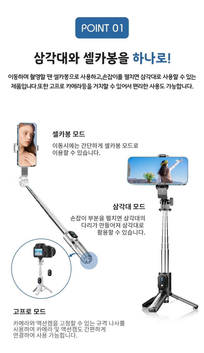 - 용도: 스마트폰/카메라/액션캠 모두 지원