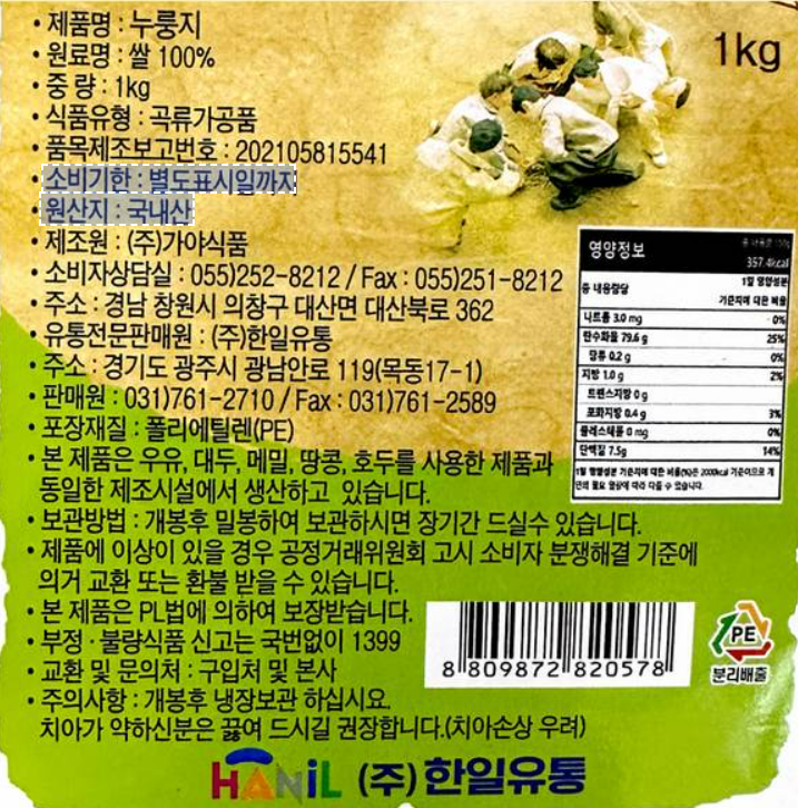 | 생산자 및 소재지 | 컨텐츠 참조 | 제조연월일, 소비기한 또는 품질유지기한 | 소비기한(또는 유통기한) : 2026년 05월 29일 이거나 그 이후인 상품<br />제조년월일 : 2025년 08월 03일 이후인 제조상품 |