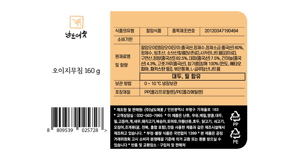 | 제품명 | 오이지무침 | 식품의 유형 | 컨텐츠 참조 |