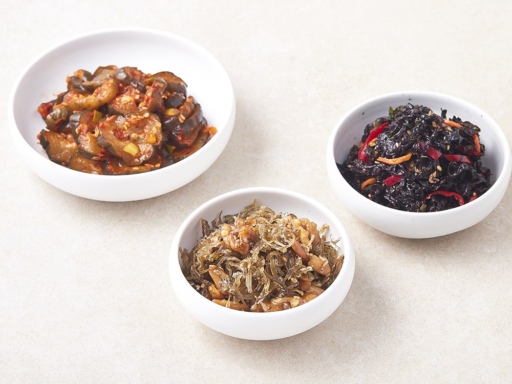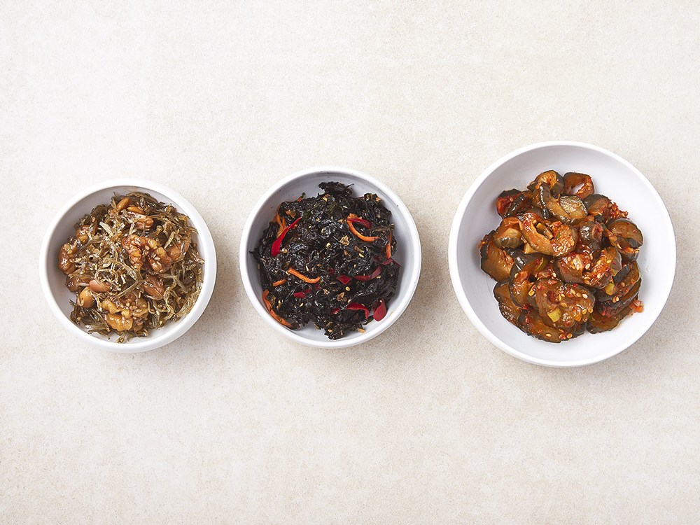 반찬 전문 브랜드 식도감의 밑반찬 3종을 소개해요. 고소한 잔멸치볶음은 물론, 향긋한 건파래무침과 아삭아삭한 오이지무침을 담았어요. 모두 밥 한 공기는 거뜬한 밥도둑 반찬이랍니다. 꺼내기만 하면 바로 먹을 수 있으니, 바쁜 날에도 손쉽게 근사한 한 상을 완성해보세요.
