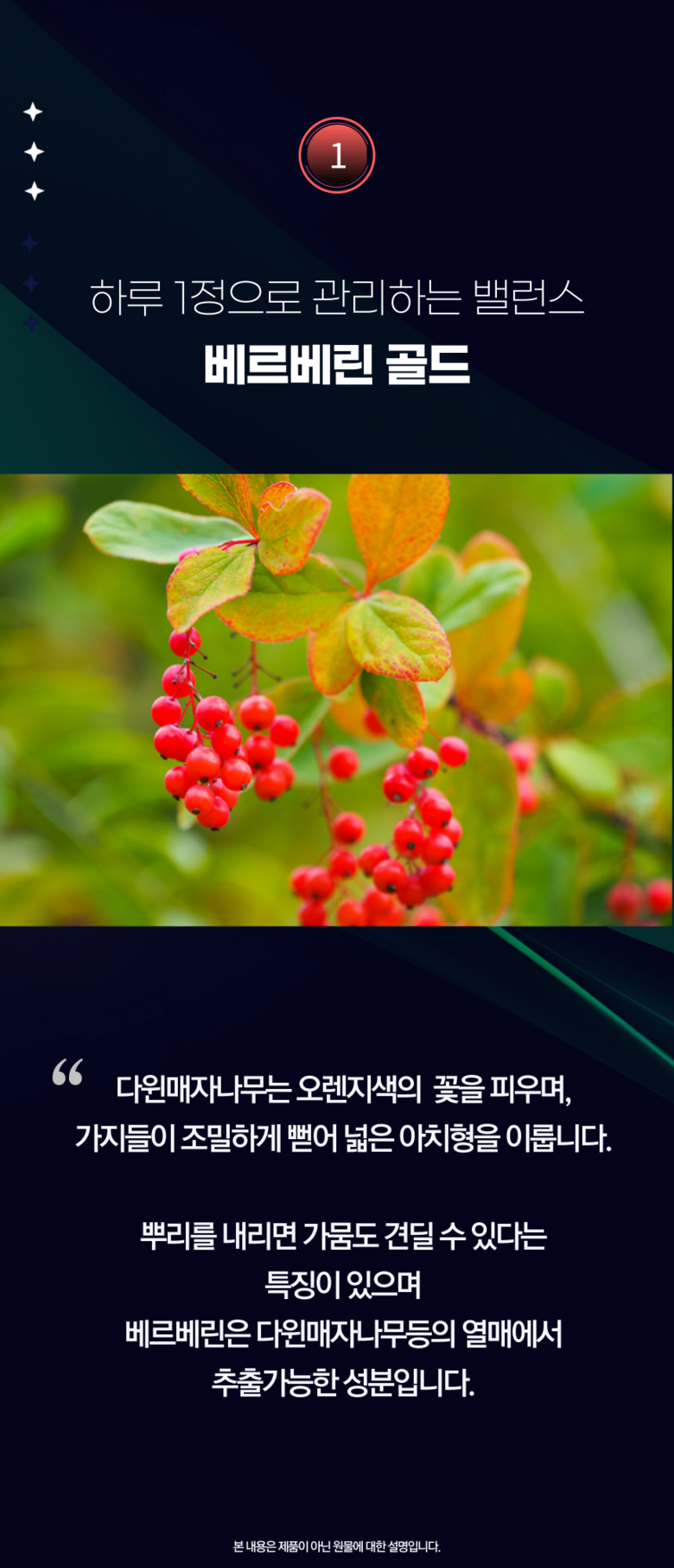 | 제품명 | 다윈매자나무열매추출물 베르베린 골드 | 식품의 유형 | 과채가공품 |