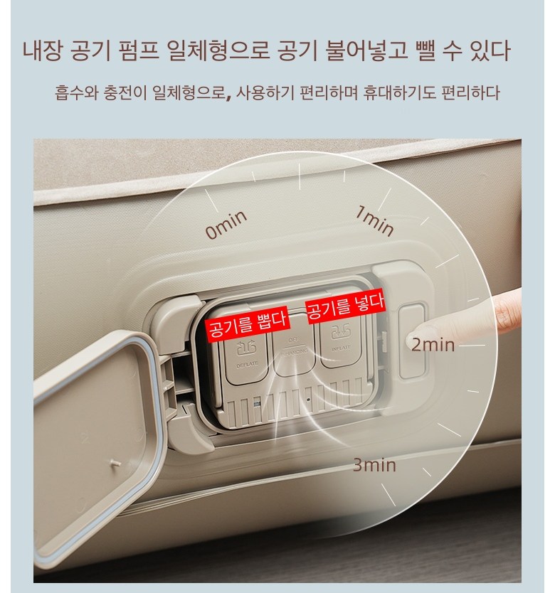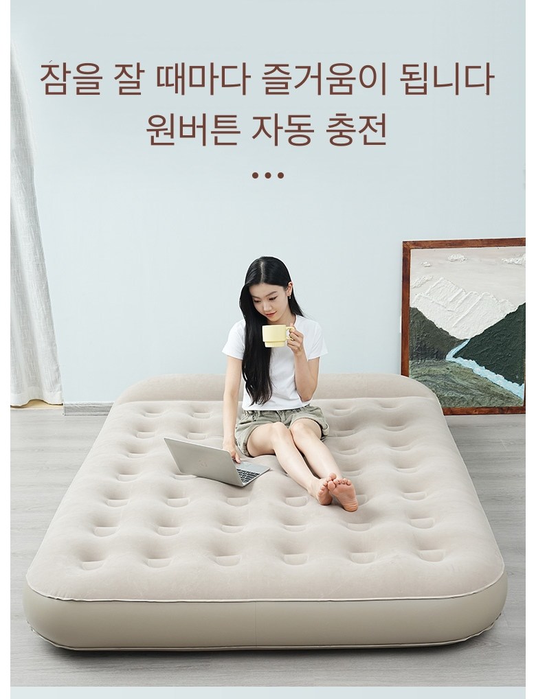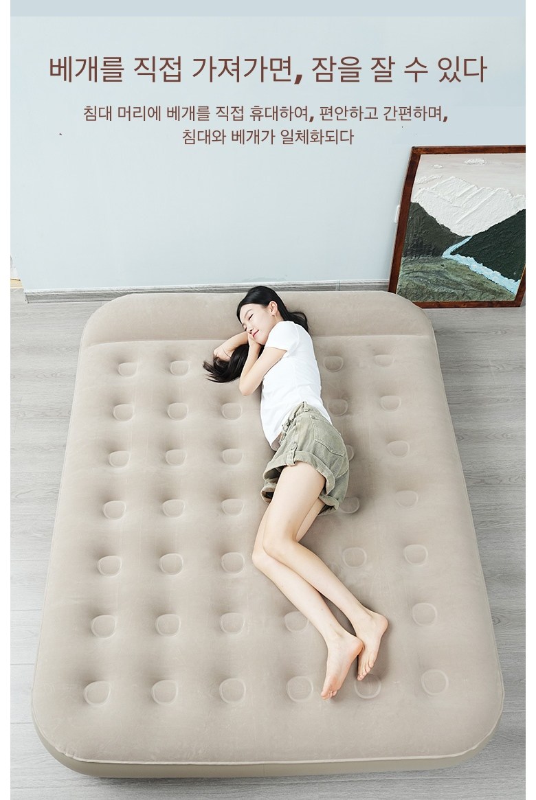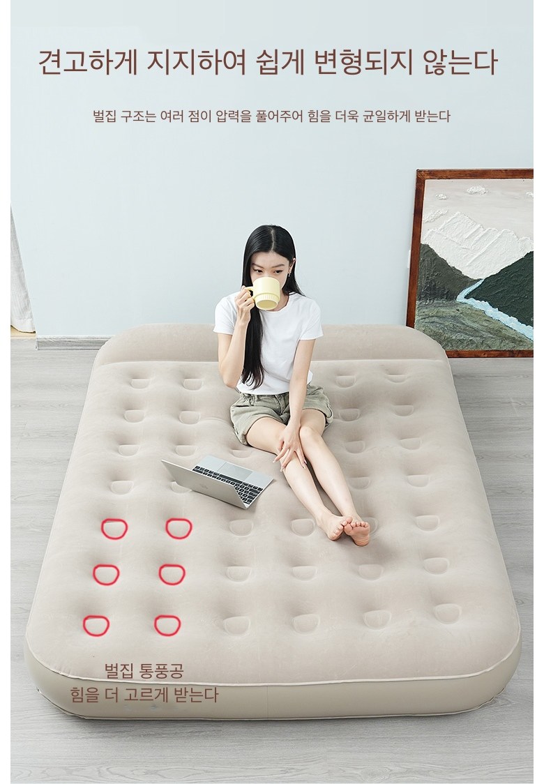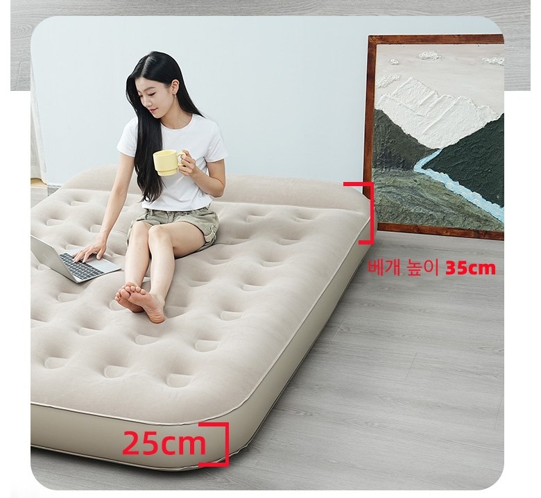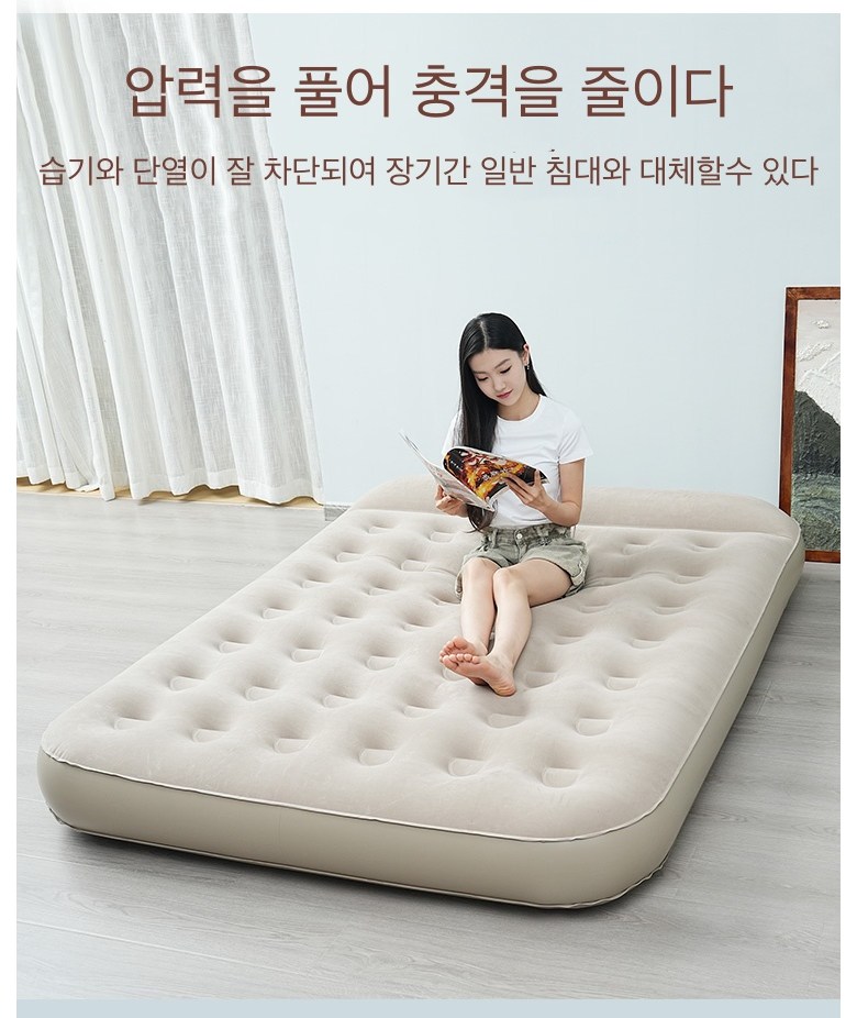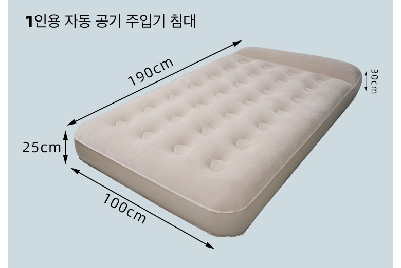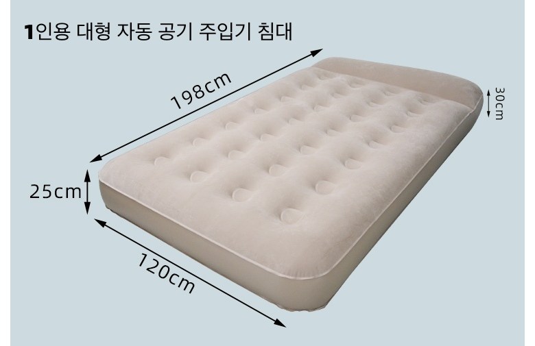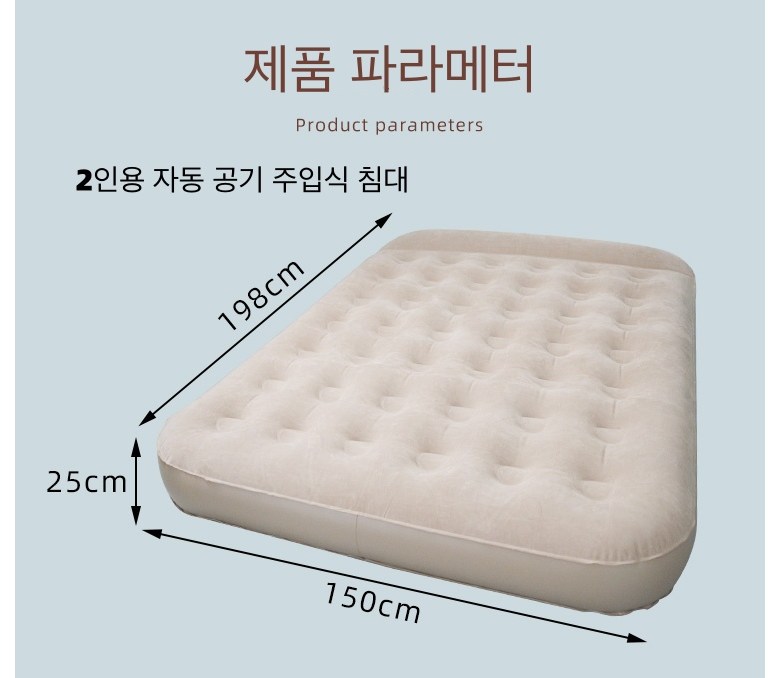 캠핑 자충 에어매트 야외 캠핑용 휴대용 침대 매트리스 내장형 자동펌프 25cm