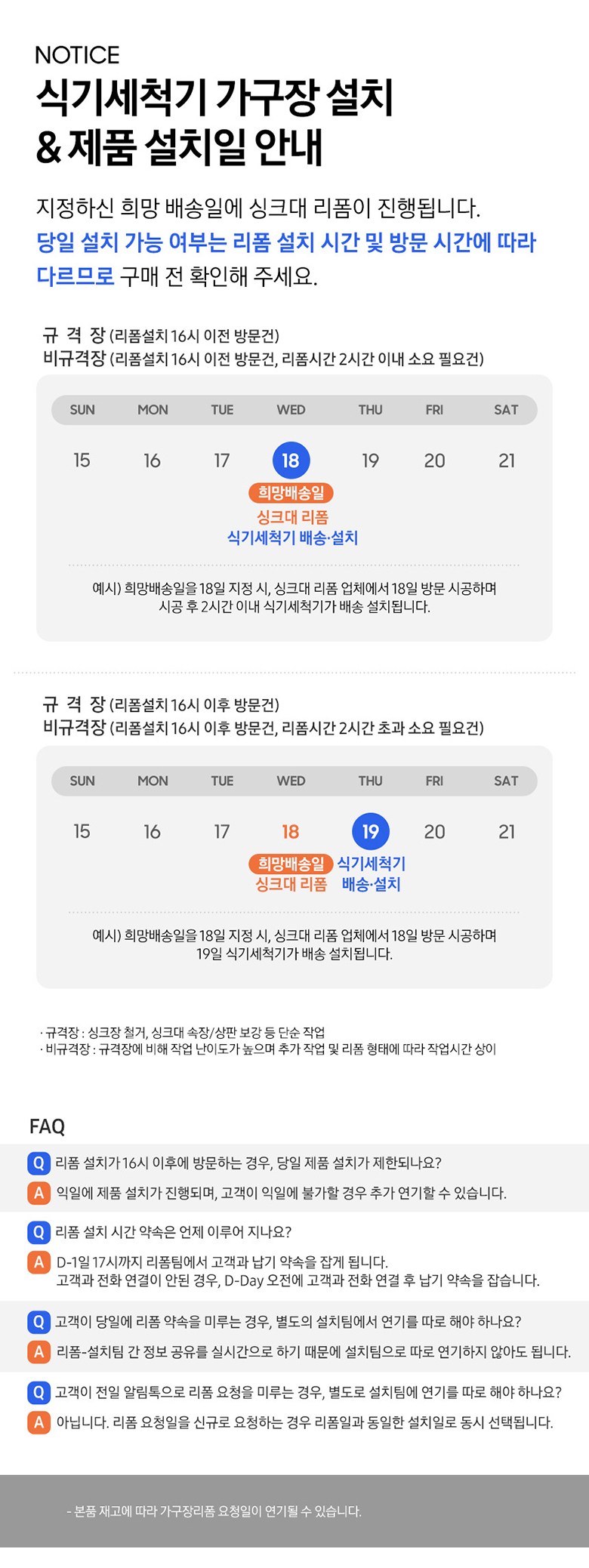 - ㆍ제조사의 사정 (신모델 출시 등) 및 부품 가격 변동 등에 의해 무료 교환/반품으로 요청하는 경우