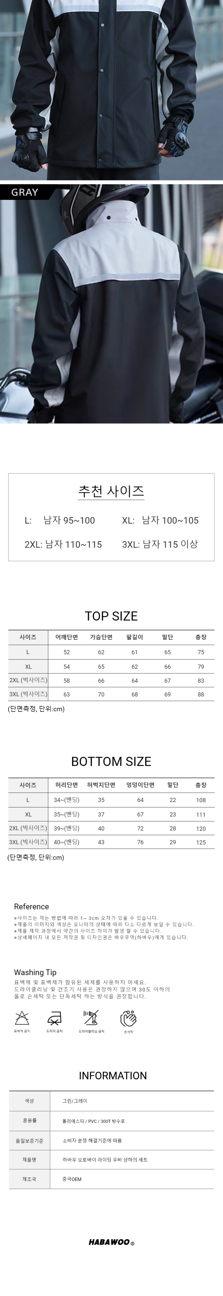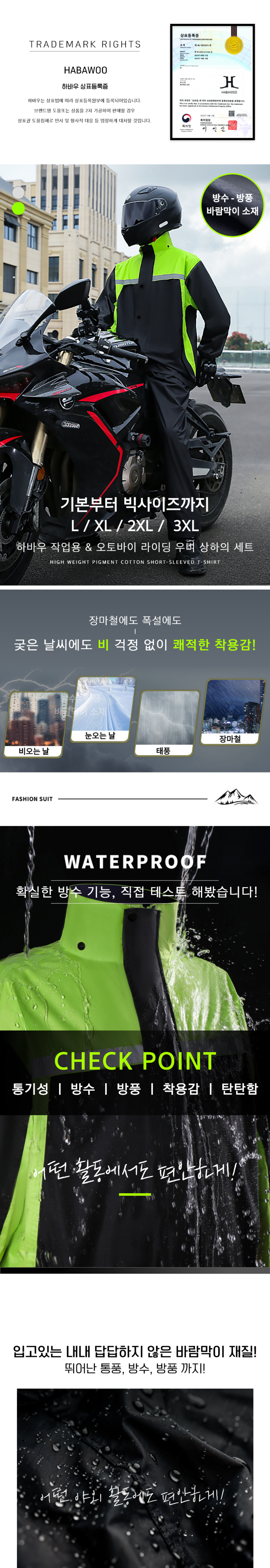 하바우 작업용 오토바이 라이딩 우비 바람막이 우의 상하의 세트 기본부터 빅사이즈까지
