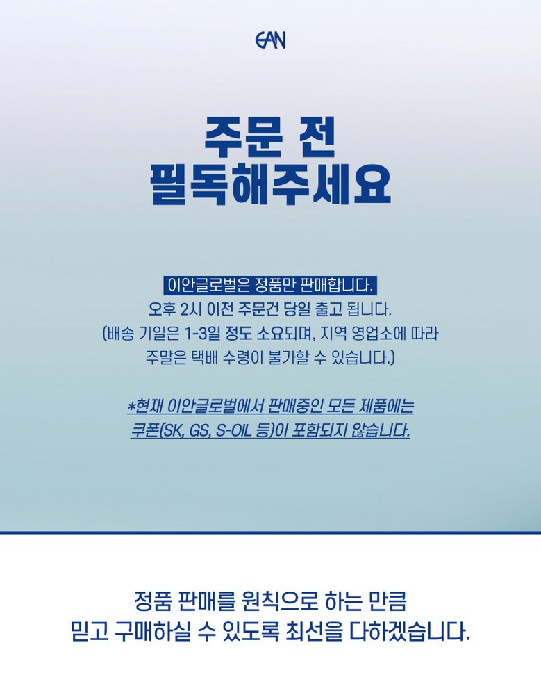 - ㆍ모니터 해상도의 차이로 인해 색상이나 이미지가 실제와 달라, 고객이 단순 변심으로 교환/반품을 무료로 요청하는 경우