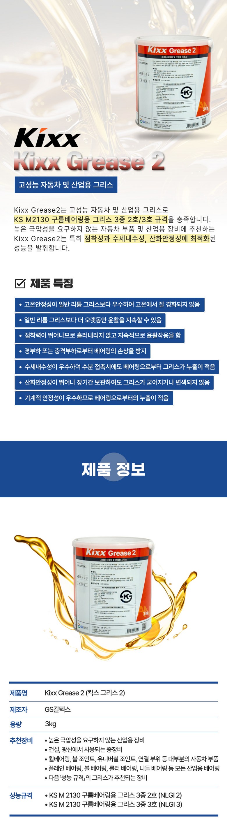 | 품명 및 모델명 | Kixx Grease 2 3kg | 동일모델 출시년월 | 2025년 8월 |