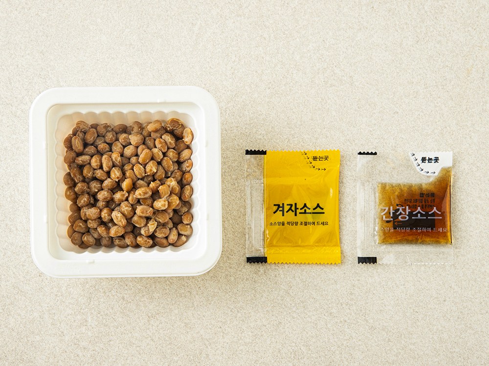백태 낫또, 참좋은콩 겨자 소스, 간장 소스로 구성되어 있습니다.