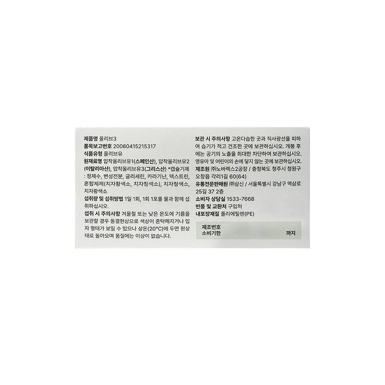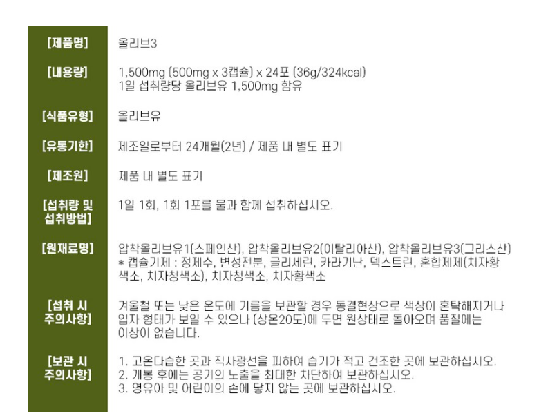 | 원료명 및 함량 | 상품 상세페이지 참조 | 영양정보 | 상품 상세페이지 참조 |