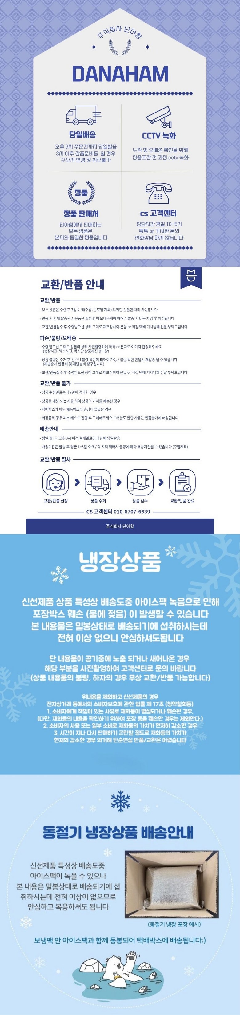 - ㆍ교환/반품에 관한 일반적인 사항은 판매자가 제시사항보다 관계법령이 우선합니다.