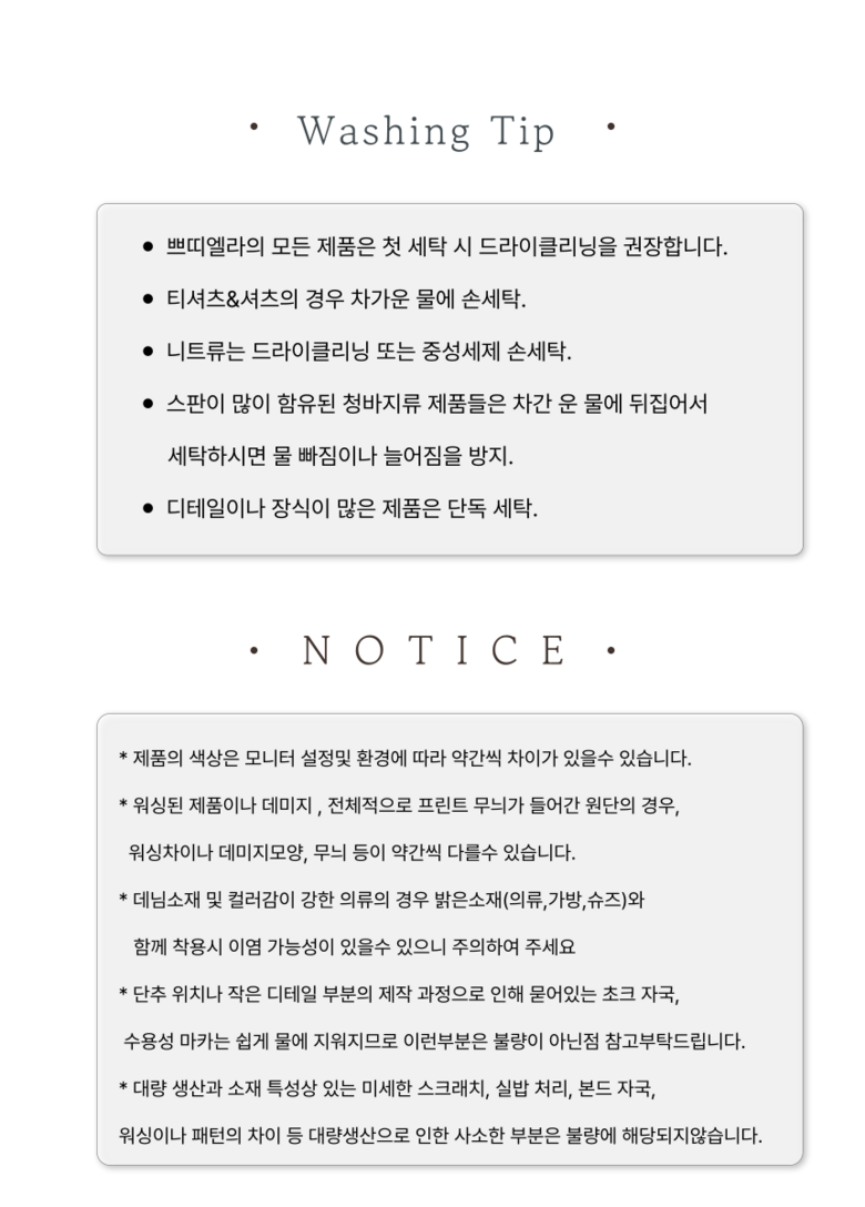 | 제조국 | 중국 | 세탁방법 및 취급시 주의사항 | 직사광선은 피하고 그늘에서 자연건조 권장 |