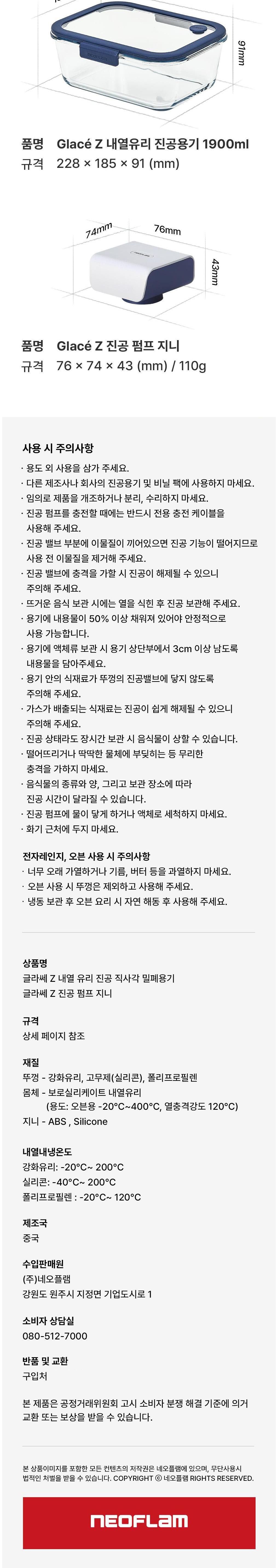| 품명 및 모델명 | 네오플램 글라쎄 Z 진공 내열유리 직사각 밀폐용기 460ml | 재질 | 컨텐츠 참조 |