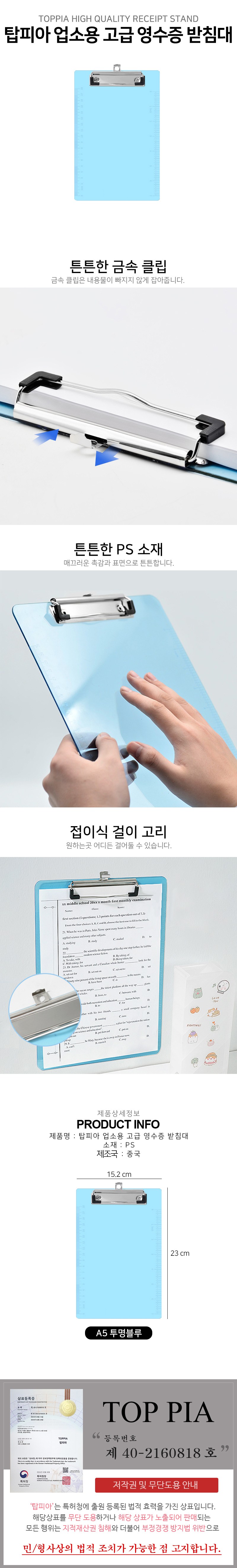 | 품명 및 모델명 | 탑피아 업소용 고급 영수증 받침대 | 인증/허가 사항 | 해당없음(14세 이상) |