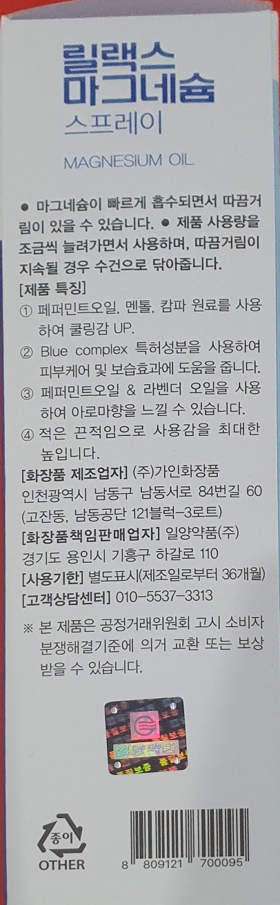 일양약품 고함량 뿌리는 릴랙스 마그네슘 오일 스프레이, 120ml, 1개