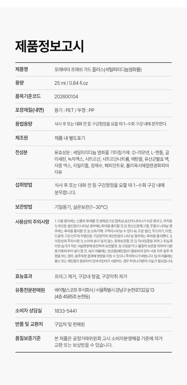 다만, 판매자의 제시사항이 관계법령보다 소비자에게 유리한 경우에는 판매자 제시사항이 적용됩니다.