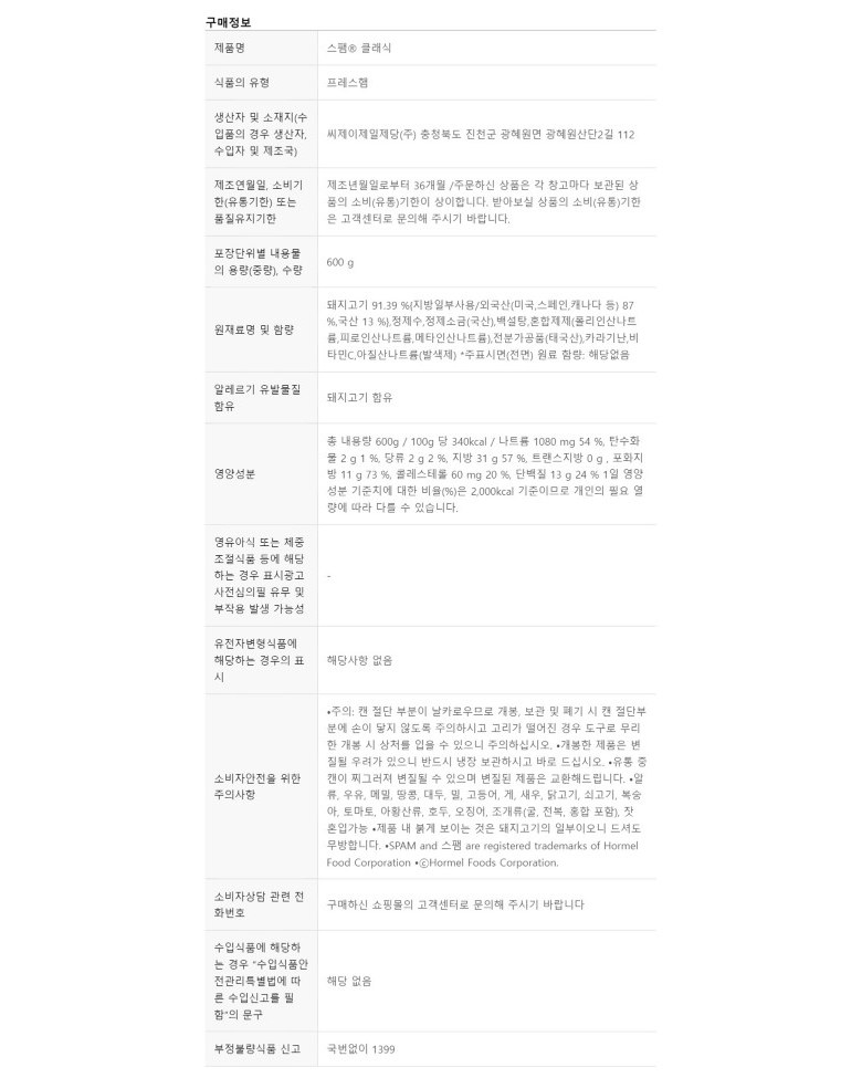 - 햄 종류: 통조림햄