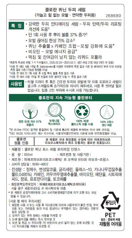 | 화장품제조업자, 화장품책임판매업자 및 맞춤형화장품판매업자 | 컨텐츠 참조 | 제조국 | 프랑스 |