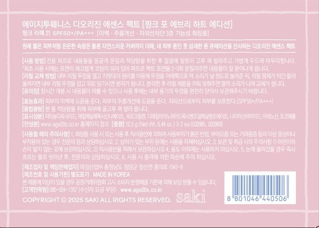 에이지투웨니스 핑크 포 에브리 하트 에디션 디오리진 에센스 팩트 12.5g + 리필 12.5g 세트