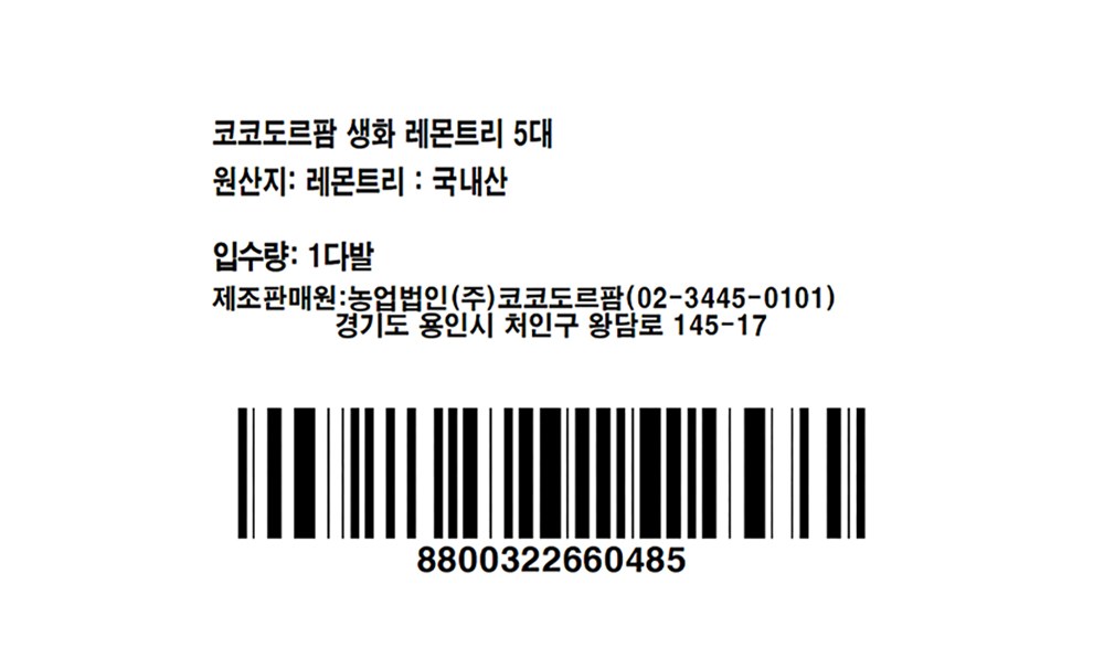 | 품명 및 모델명 | 코코도르팜 생화 레몬트리 5대 | 인증/허가 사항 | 해당없음 |